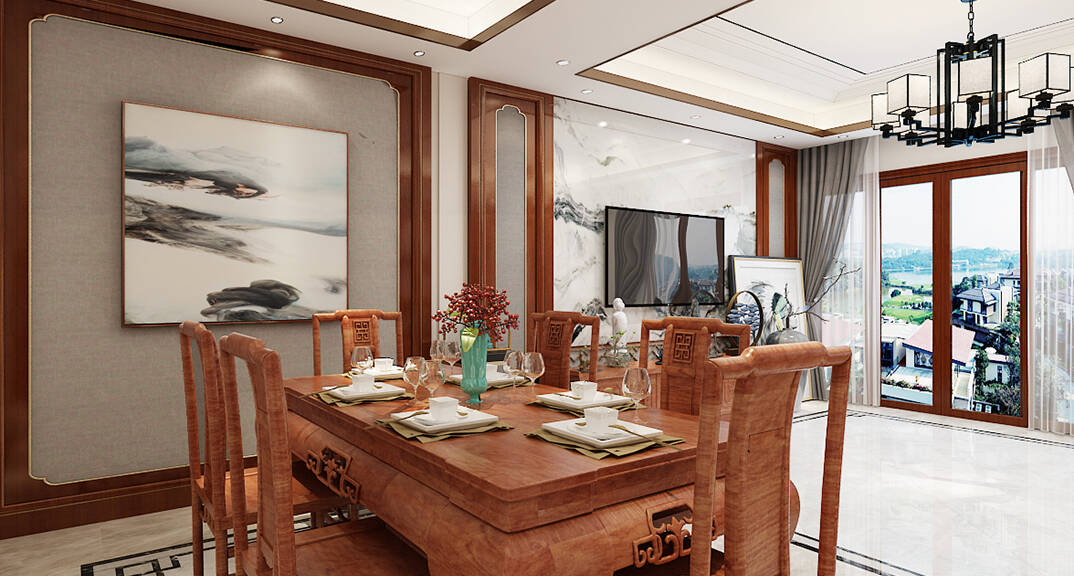 龍湖九里香醍 350㎡ 別墅 新中式風(fēng)格餐廳裝修效果圖