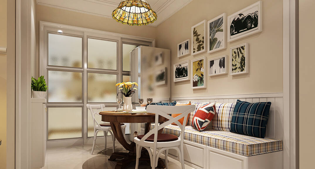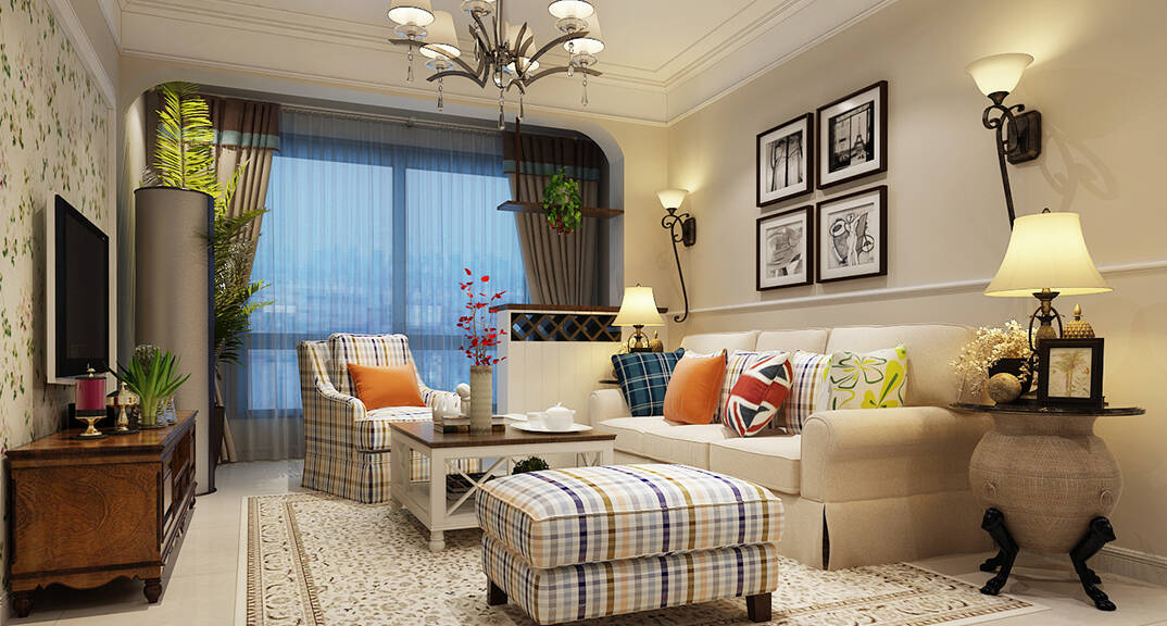 在室內裝修中多采用天然木、石、藤、竹等材質的裝修元素,并且在后期的細節(jié)之處配飾中,融入各種自然的裝修元素,時常采用碎花圖案的各種布藝和掛飾,與美式家具貴氣的輪廓相得益彰