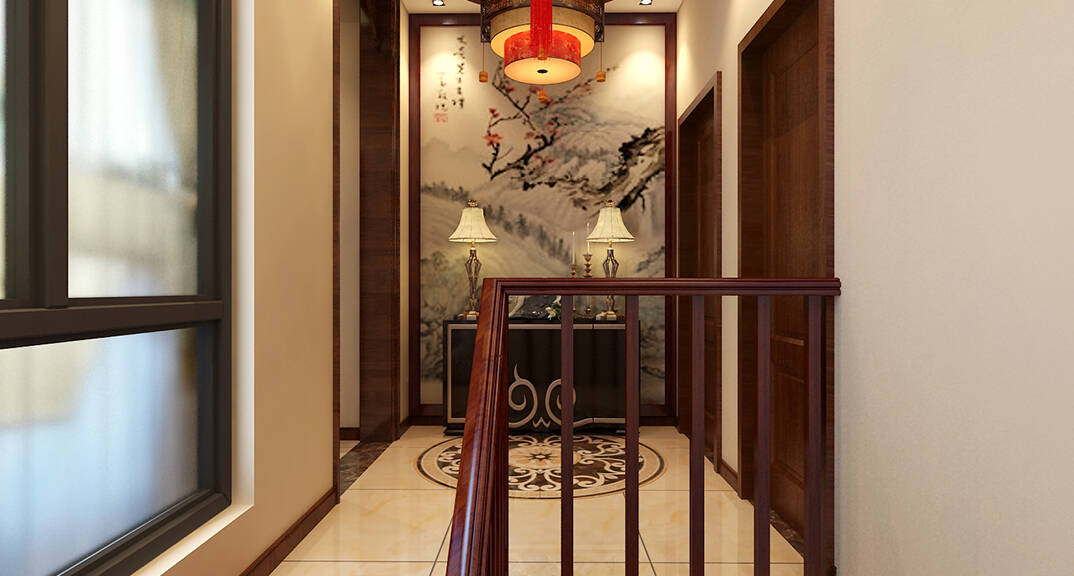 安納溪220㎡獨棟別墅樓梯走廊古典中式風(fēng)格裝修案例效果圖