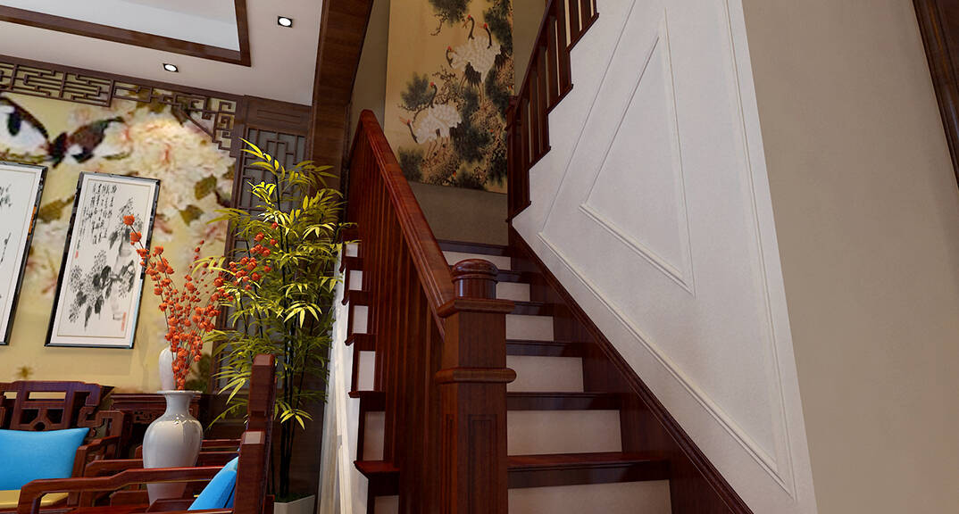 安納溪220㎡獨棟別墅樓梯古典中式風(fēng)格裝修案例效果圖