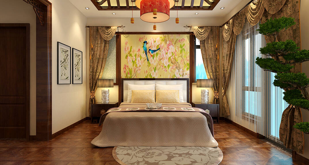 安納溪220㎡獨棟別墅臥室古典中式風(fēng)格裝修案例效果圖