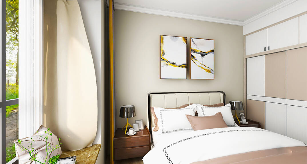 膠州機(jī)場公寓118㎡三室一廳次臥簡約風(fēng)格裝修案例效果圖