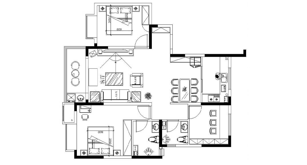 膠州機(jī)場公寓118㎡三室一廳簡約風(fēng)格裝修戶型設(shè)計(jì)圖