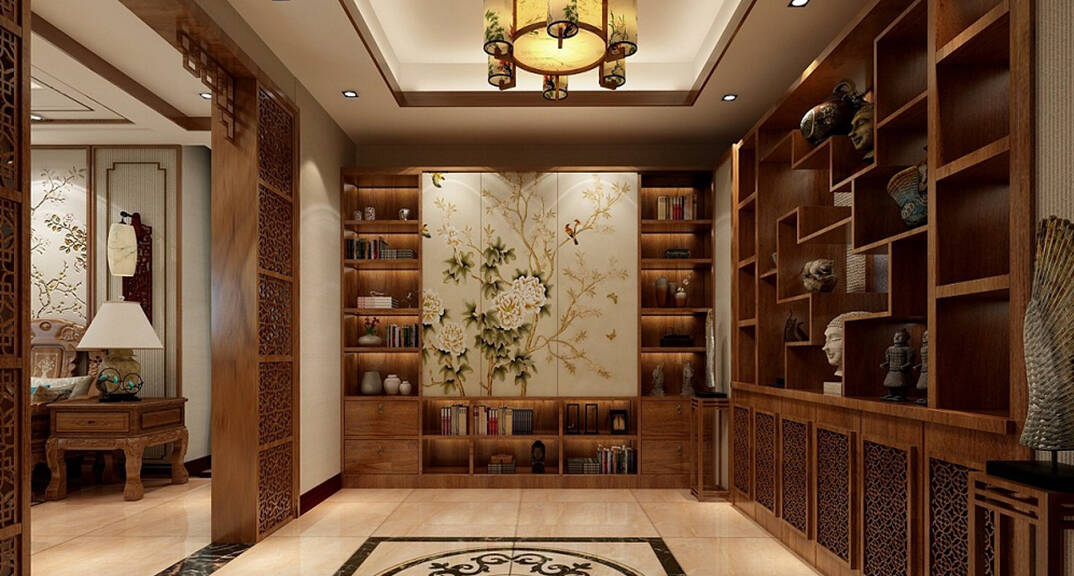 海川泓久山墅635㎡別墅收藏室新中式風(fēng)格裝修案例效果圖