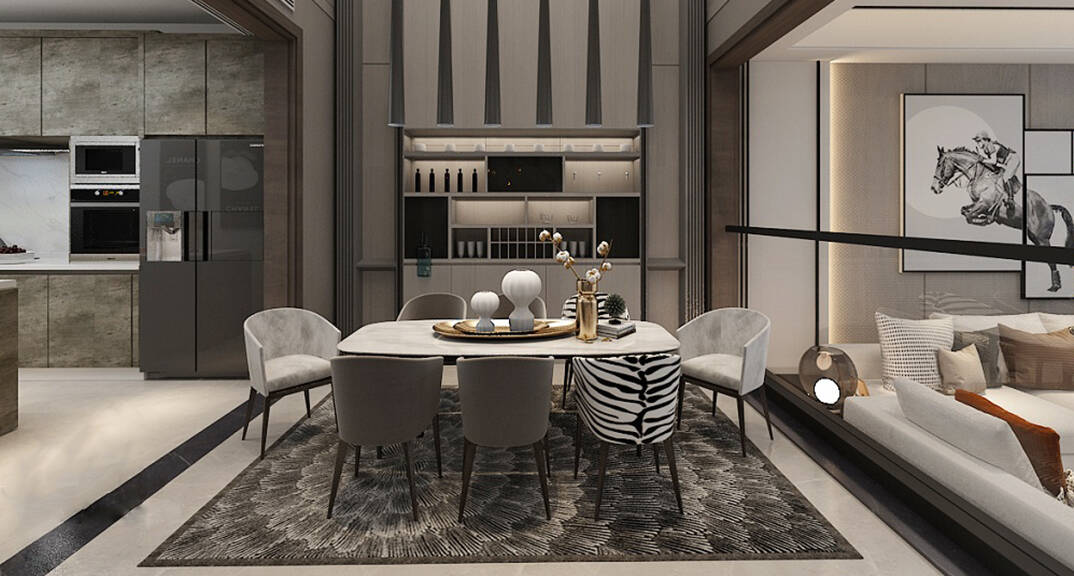 嶺海迪亞灣210平聯(lián)排別墅餐廳沙發(fā)現(xiàn)代風(fēng)格裝修效果圖