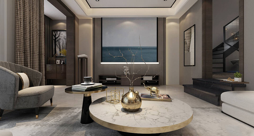 嶺海迪亞灣210平聯(lián)排別墅客廳現(xiàn)代風(fēng)格裝修效果圖