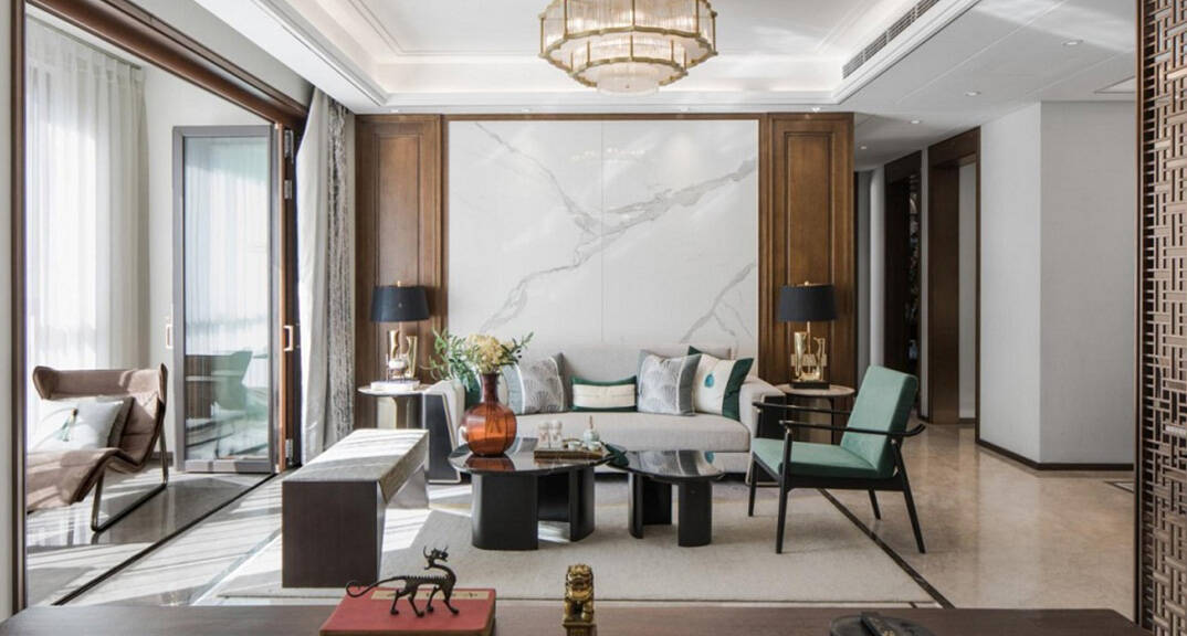 青鋼小鎮(zhèn)134平 2室2廳新中式風格裝修客廳