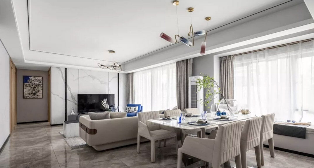 天一仁和瓏樾海125㎡別墅上疊客廳現(xiàn)代輕奢風格裝修研發(fā)效果圖