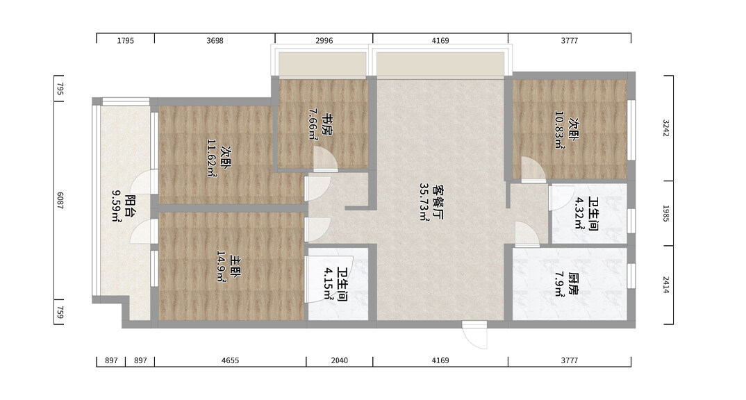 桃李芳菲2室2廳1廚2衛(wèi)126㎡戶型圖