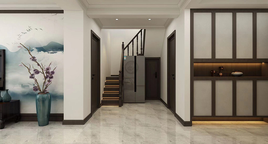 鑫江華府150㎡別墅上疊樓梯走廊新中式風(fēng)格裝修案例效果圖