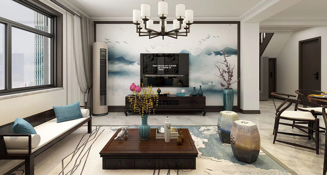 鑫江華府150㎡別墅上疊客廳新中式風(fēng)格裝修案例效果圖