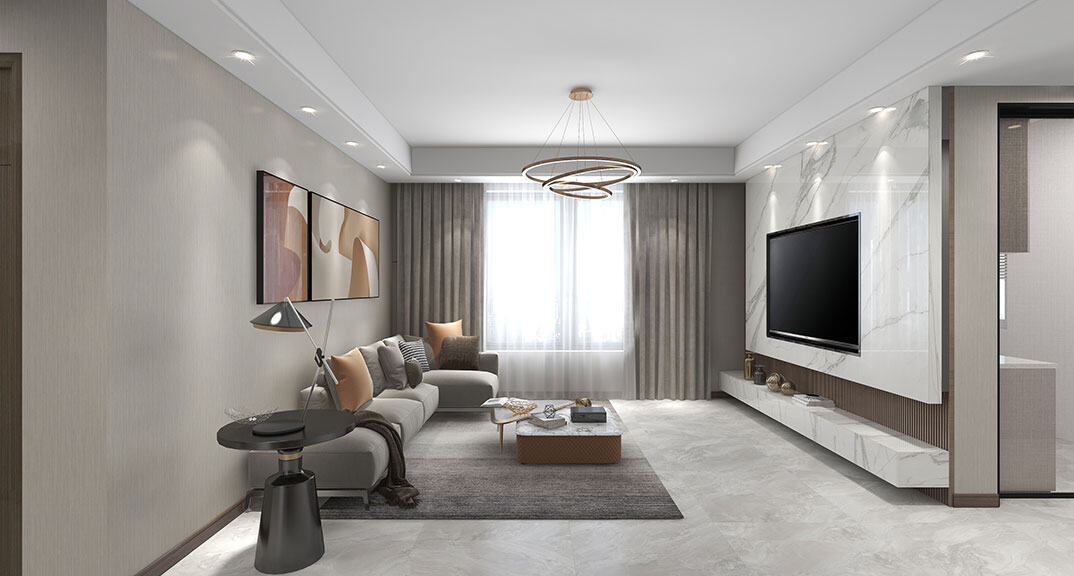 金地·錦宸110㎡三室一廳客廳現(xiàn)代簡約風(fēng)格戶型研發(fā)案例效果圖