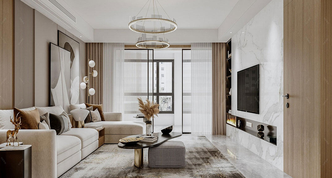 現(xiàn)代輕奢風格,注重高品質(zhì)與設計感,將優(yōu)雅時尚的質(zhì)感結合著現(xiàn)代材質(zhì)及裝飾技巧,從而巧妙的呈現(xiàn)在居室中,展示著精致高端的生活態(tài)度。它從來都不是單單靠一種細節(jié)或一種元素,它往往是多個細節(jié)元素組合而來,優(yōu)雅舒適簡約而有氣質(zhì)。黃銅和大理石是現(xiàn)在最熱門的輕奢元素,黃銅的高級質(zhì)感搭配大理石的溫潤內(nèi)斂,在視覺上可以形成一股極強的藝術張力,輕松打造一個時尚精致的現(xiàn)代家居環(huán)境。