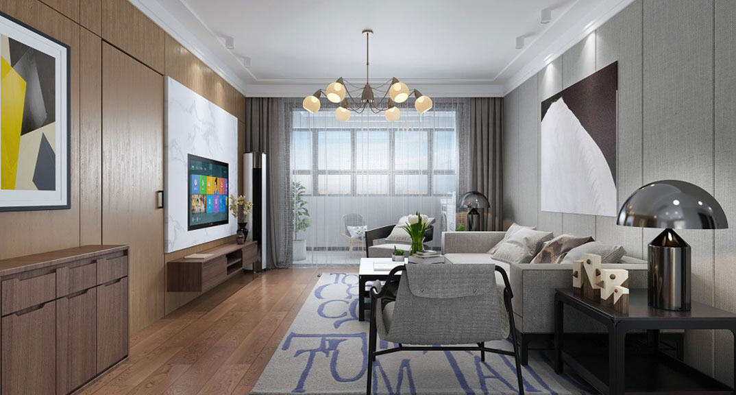 青鋼小鎮(zhèn)140㎡三室二廳客廳現(xiàn)代風格裝修案例效果圖