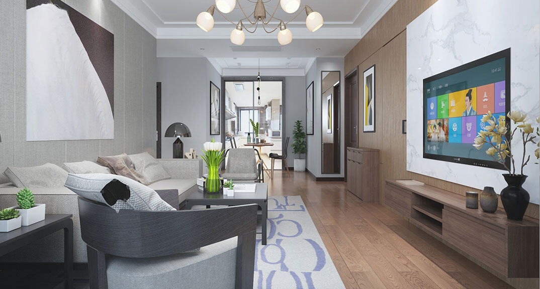 青鋼小鎮(zhèn)140㎡三室二廳客廳電視現(xiàn)代風格裝修案例效果圖