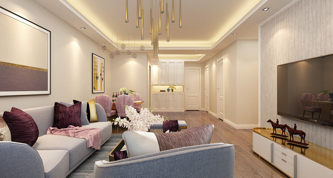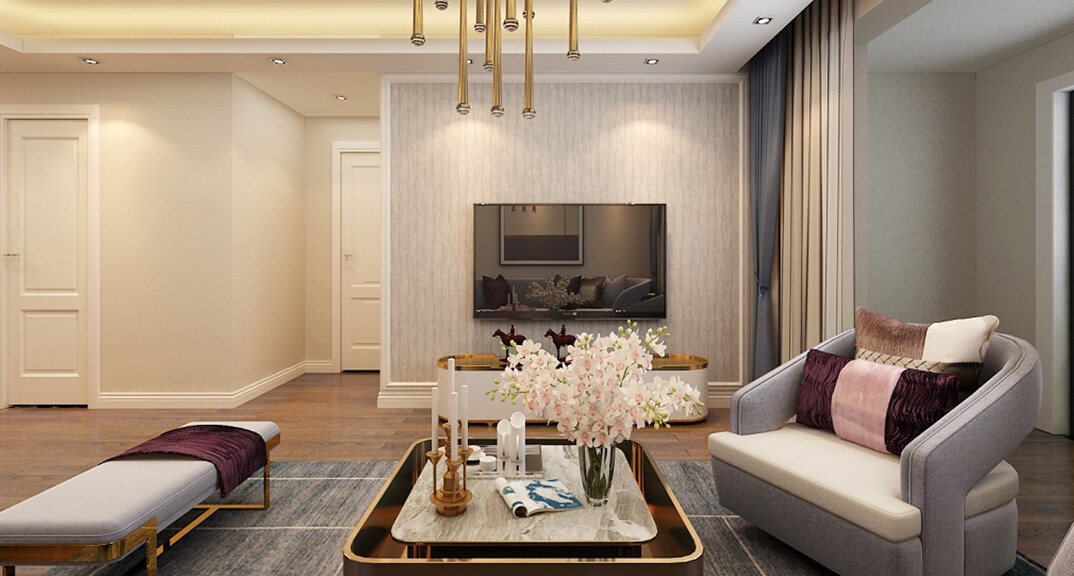 海爾產(chǎn)城創(chuàng)鼎世華府90㎡兩室兩廳客廳現(xiàn)代風格裝修案例效果圖
