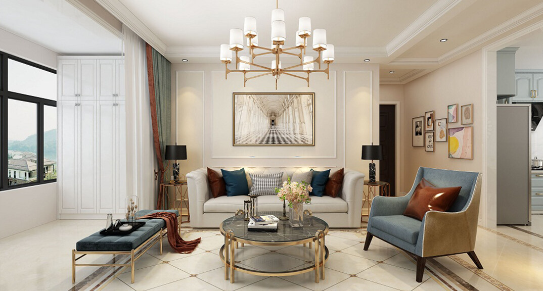青鋼小鎮(zhèn)105㎡三室兩廳客廳簡歐現(xiàn)代風(fēng)格裝修案例效果圖