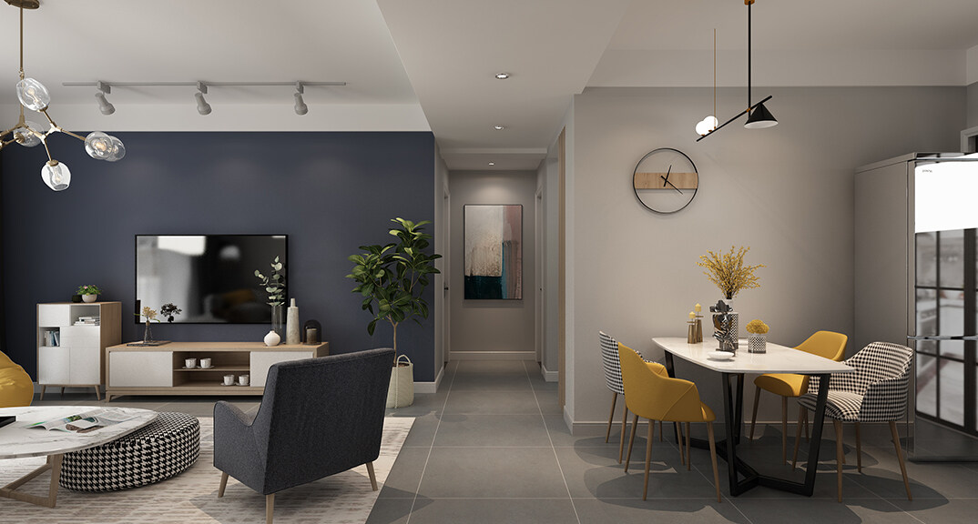 永利國際134㎡三室兩廳客餐廳北歐風格裝修案例效果圖