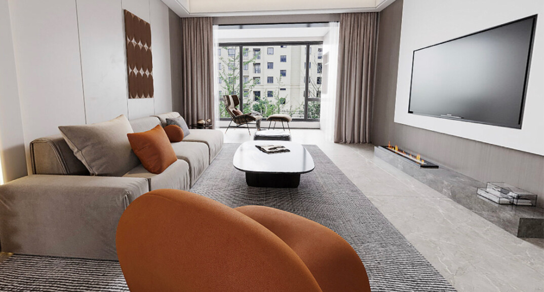 安泰未來城140㎡三室兩廳客廳現(xiàn)代簡約風(fēng)格裝修案例效果圖
