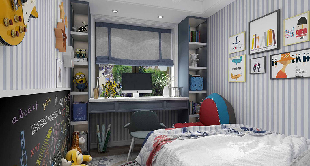 錦華御府169㎡平層兒童房現(xiàn)代極簡風(fēng)格裝修案例效果圖