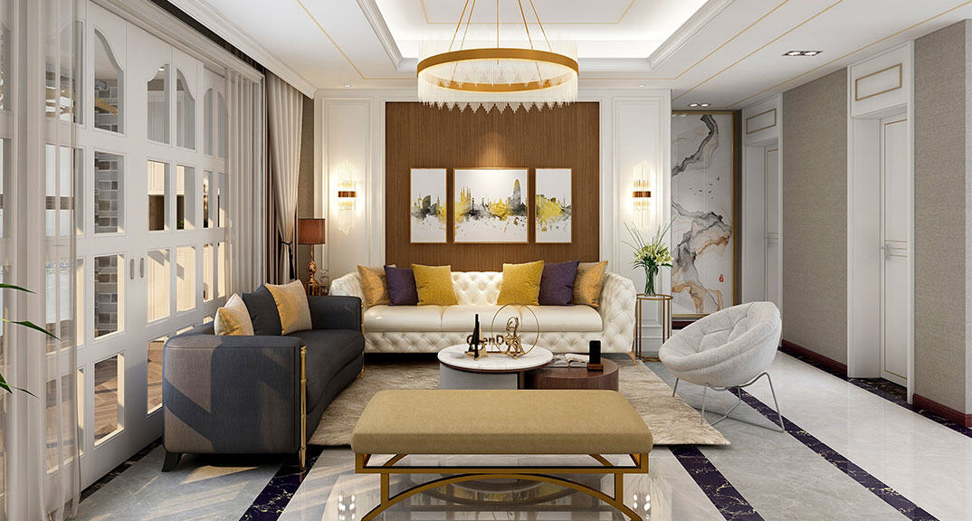 依云四季138㎡四室兩廳客廳沙發(fā)美式輕奢風(fēng)格戶型研發(fā)案例效果圖