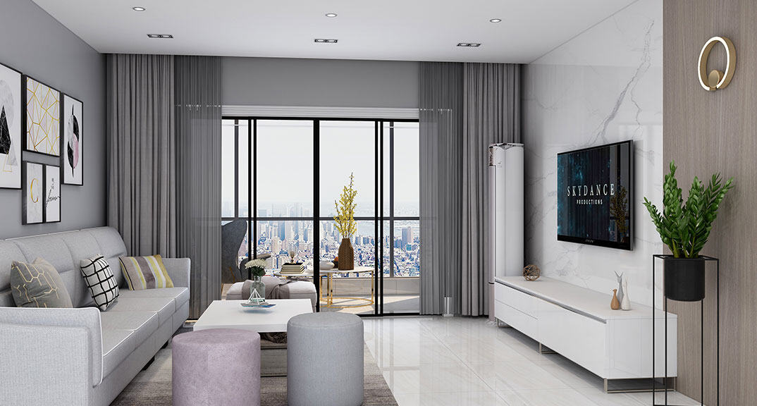 依云四季108㎡三室兩廳客廳現(xiàn)代簡約風格裝修案例效果圖