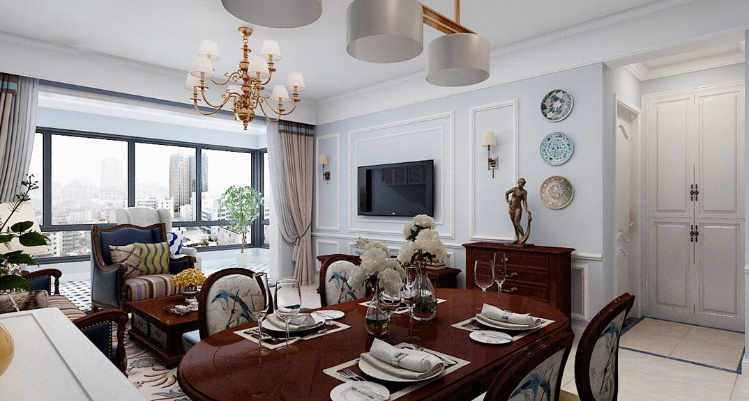 安泰德園138㎡三室兩廳客餐廳美式風(fēng)格裝修案例效果圖