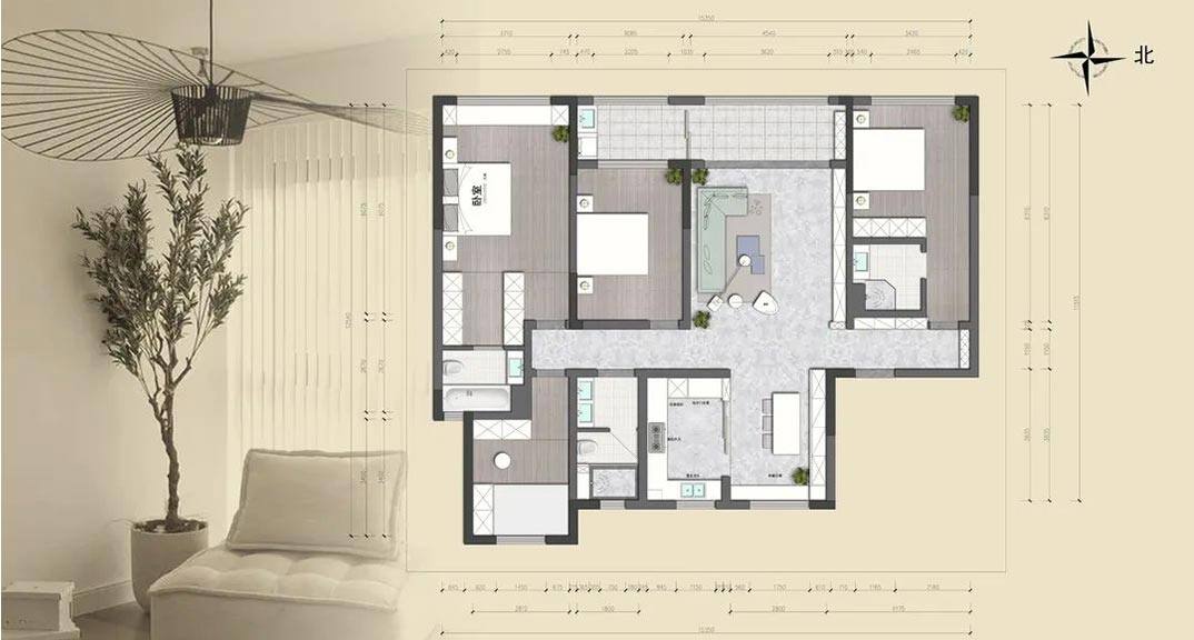 盛世華府200㎡四室兩廳榻榻米輕法風(fēng)格裝修案例效果圖