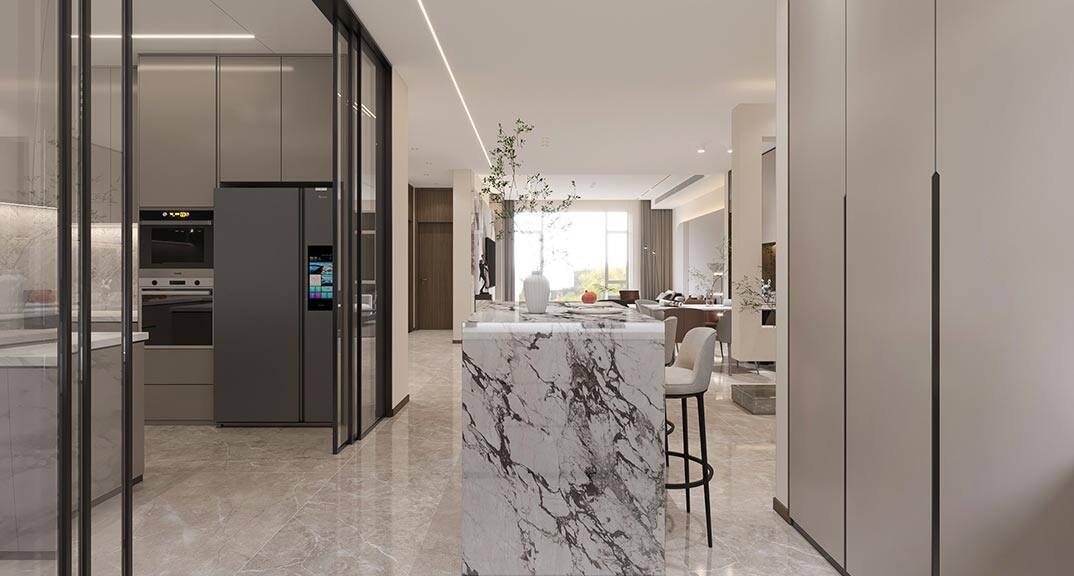 紅島府260㎡別墅吧臺(tái)廚房現(xiàn)代極簡風(fēng)格裝修案例效果圖