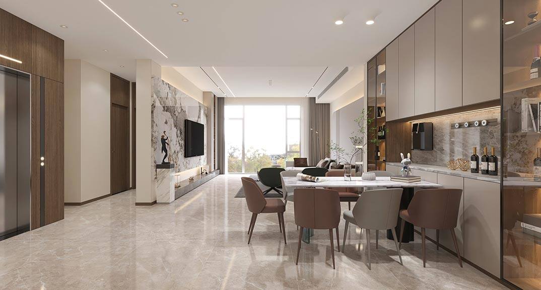 紅島府260㎡別墅客餐廳現(xiàn)代極簡風(fēng)格裝修案例效果圖