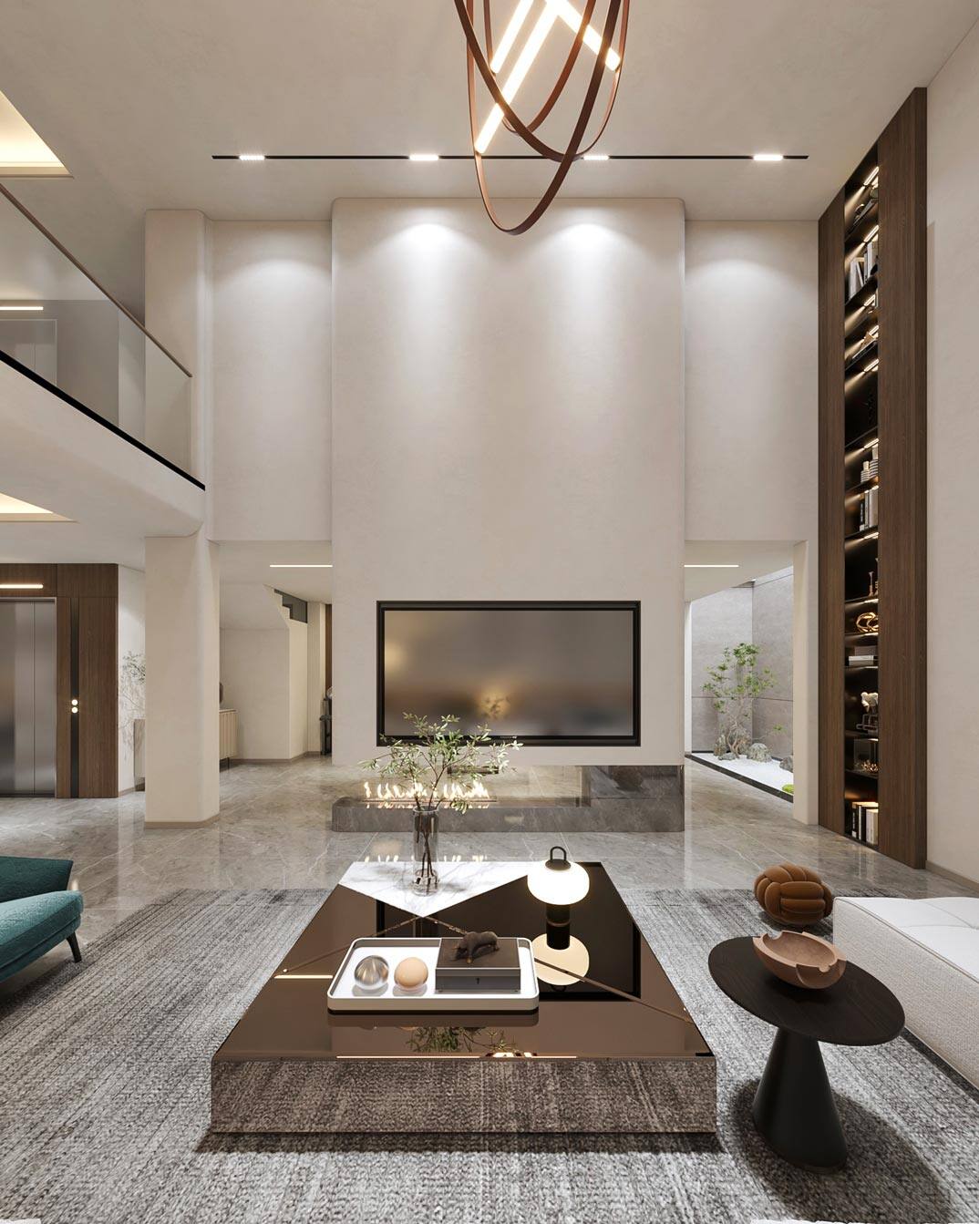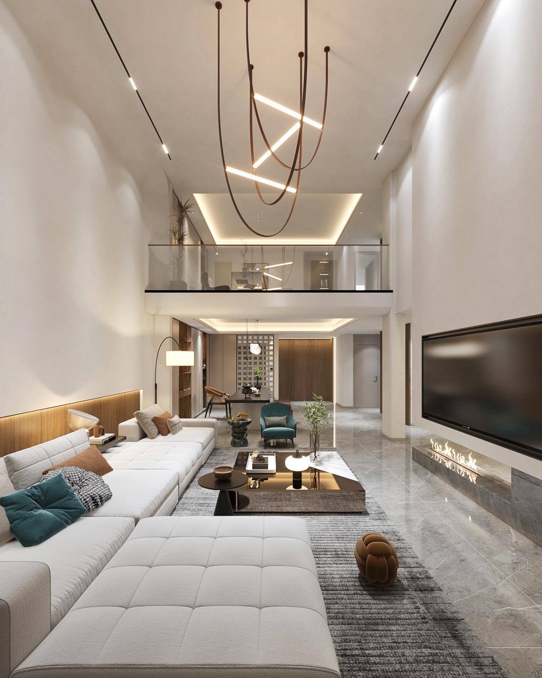 紅島府260㎡別墅客廳現(xiàn)代極簡風(fēng)格裝修案例效果圖