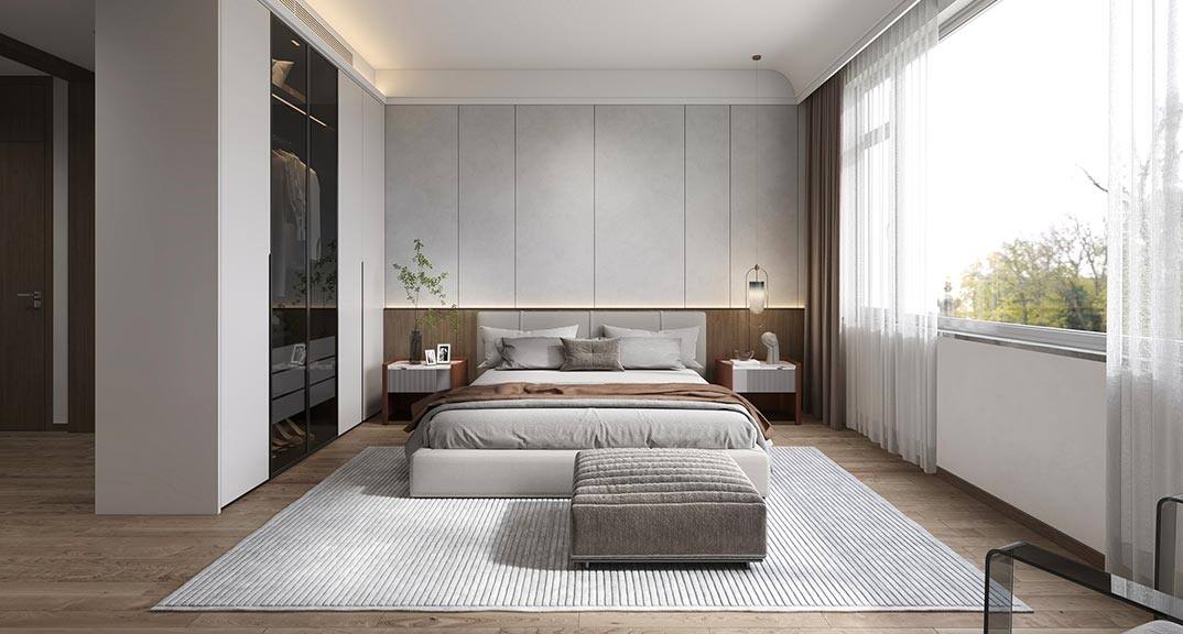 紅島府260㎡別墅臥室現(xiàn)代極簡風(fēng)格裝修案例效果圖