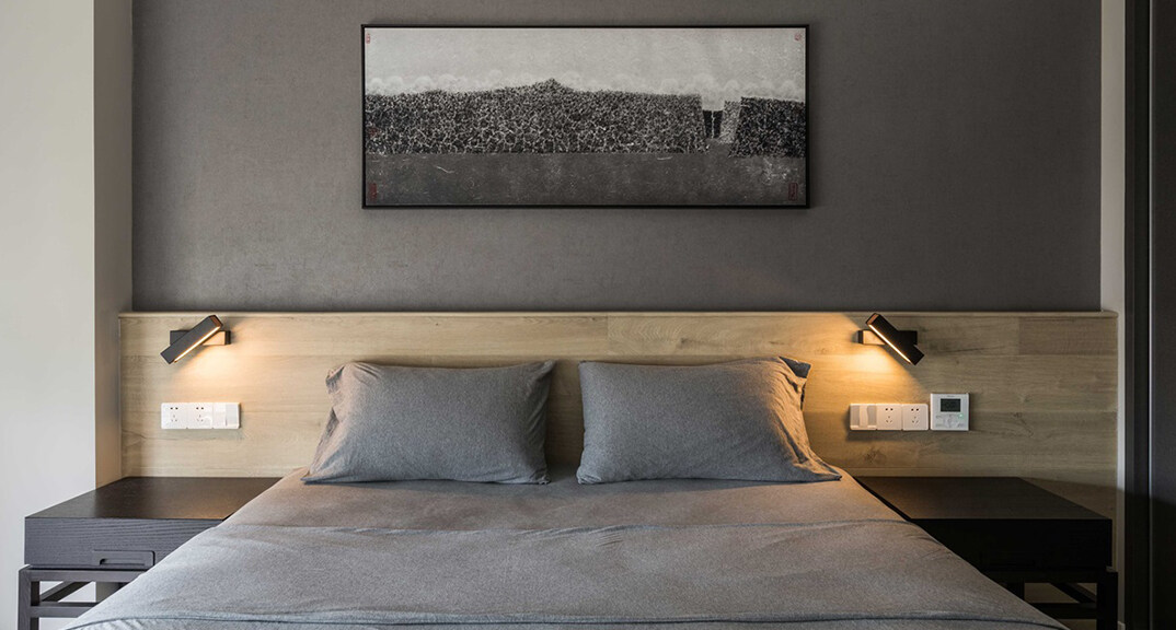在體現(xiàn)硬朗線條的同時與地面的灰色格調(diào)形成了呼應(yīng),形成了視覺沖擊,讓空間呈現(xiàn)出了活躍年輕的效果。設(shè)計師在吊燈方面選擇了現(xiàn)代輕奢的磁吸軌道燈和筒燈,低調(diào)又奢華。