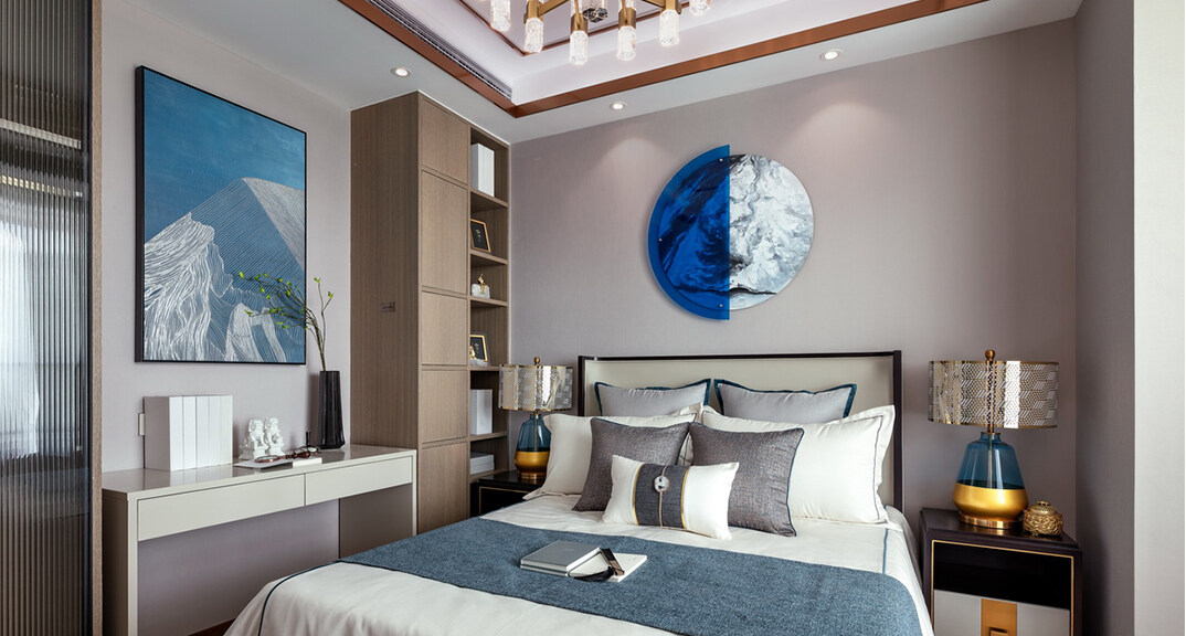 青特星城119㎡三室兩廳主臥新中式風(fēng)格裝修案例效果圖