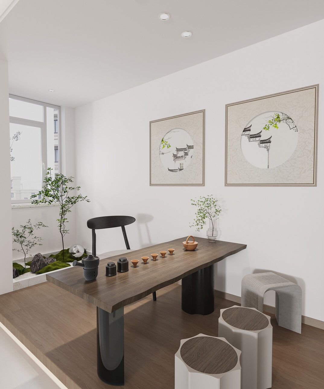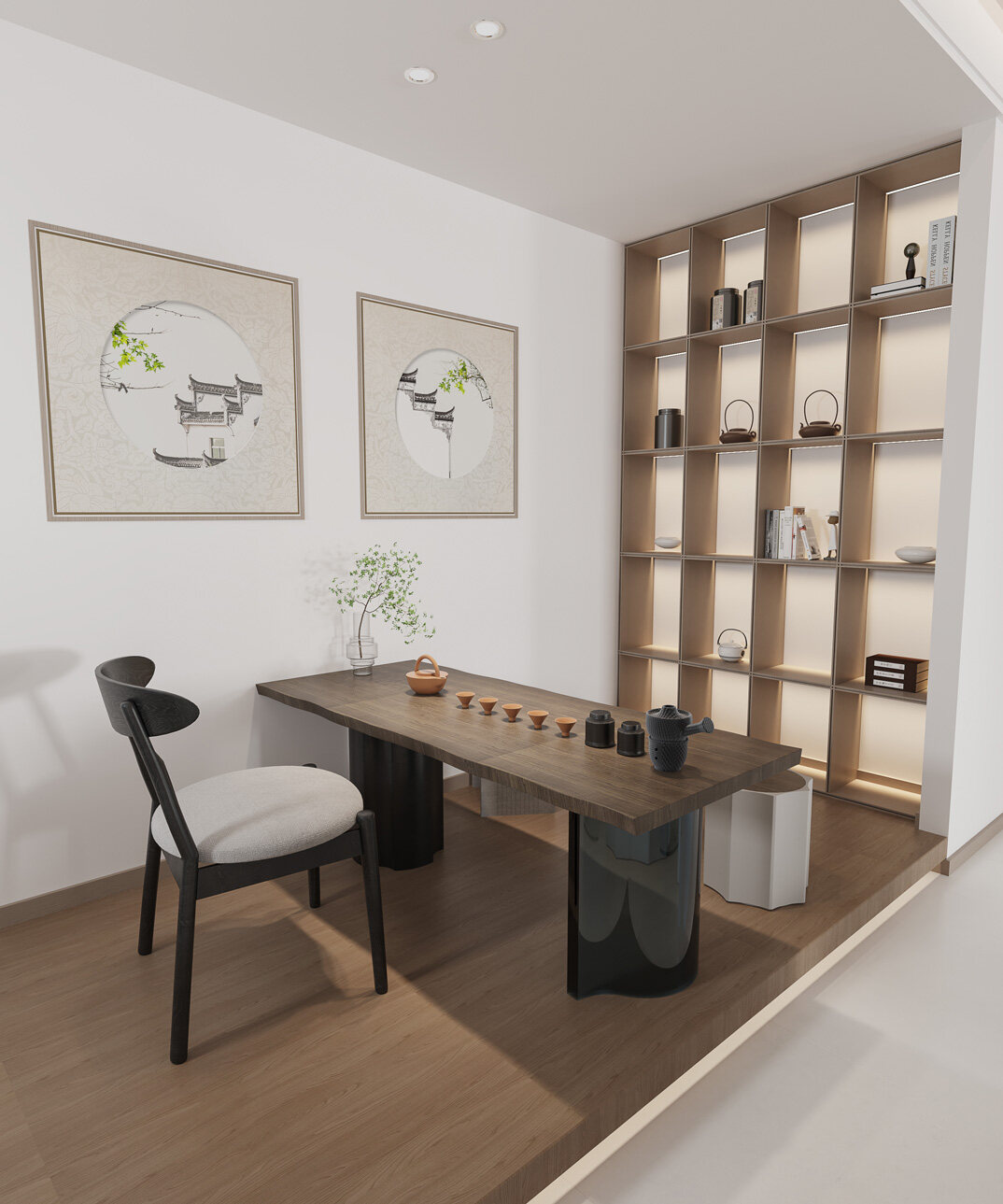 東岸世家167㎡三室兩廳茶室現(xiàn)代極簡風(fēng)格裝修案例效果圖