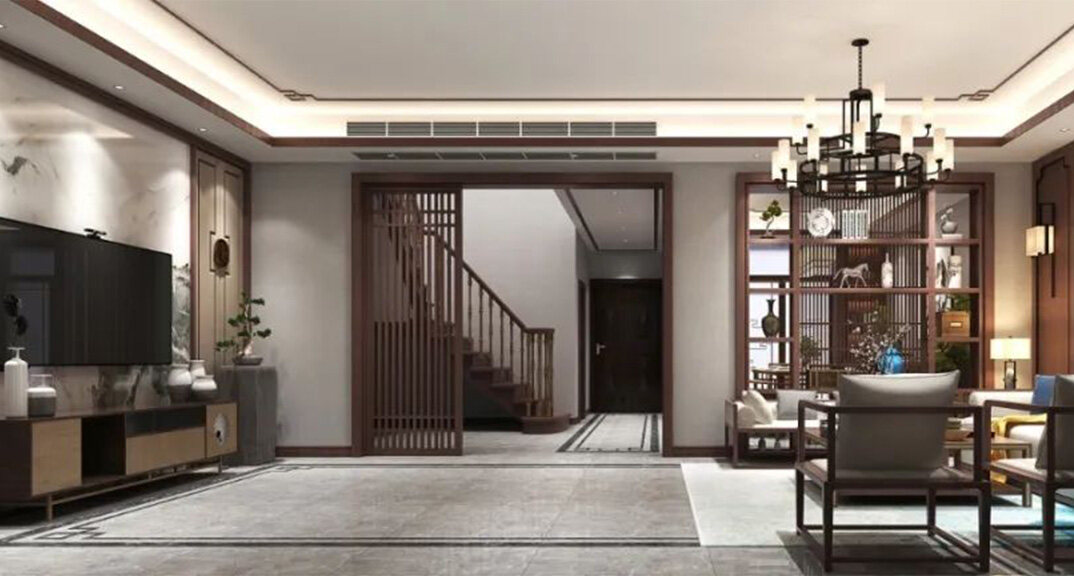 北海錦華352㎡別墅客廳沙發(fā)新中式風格裝修案例效果圖