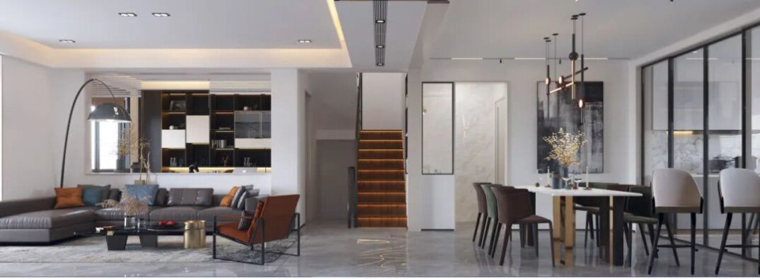 招商·海語墅260㎡別墅客餐廳簡美風格裝修案例效果圖