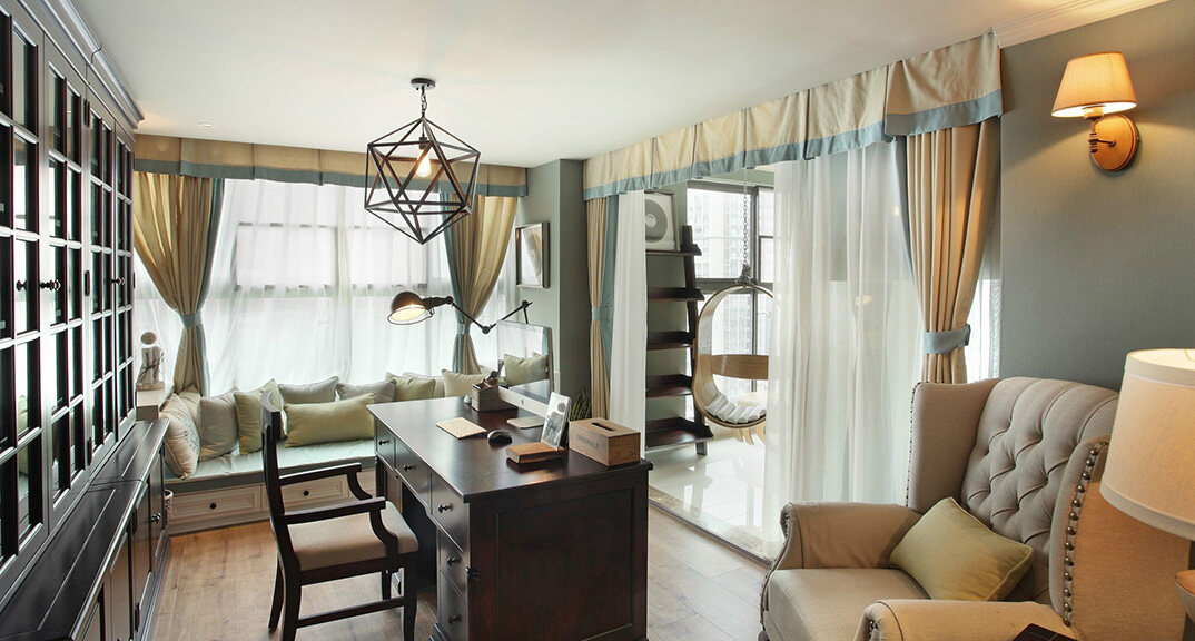 檀府300㎡別墅書(shū)房現(xiàn)代美式風(fēng)格裝修案例效果圖