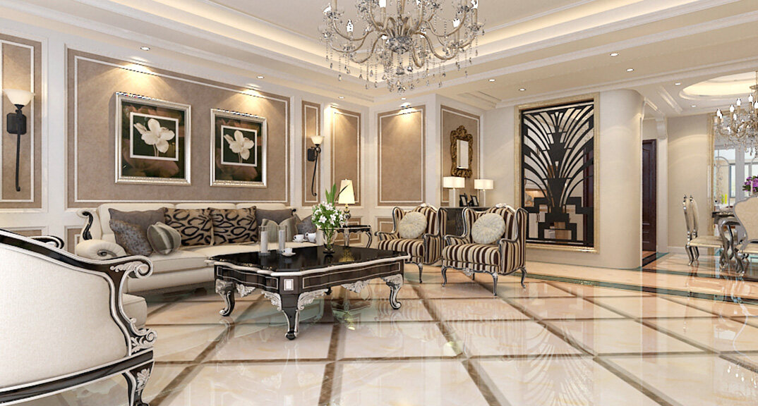 魯潤靜園234㎡四室兩廳客廳簡歐風(fēng)格裝修案例效果圖