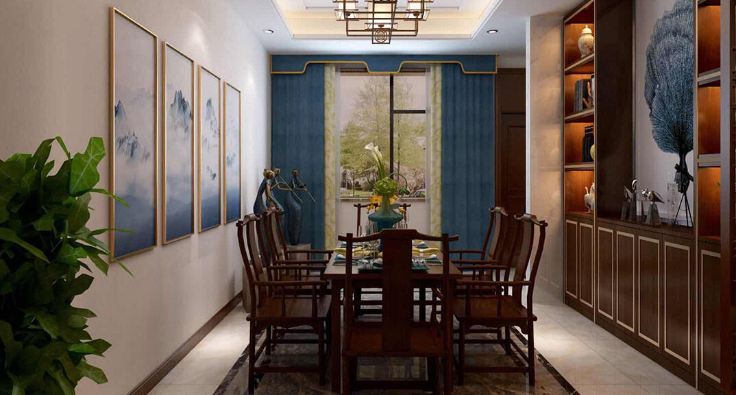 自建別墅360㎡別墅餐廳中式風(fēng)格裝修案例效果圖