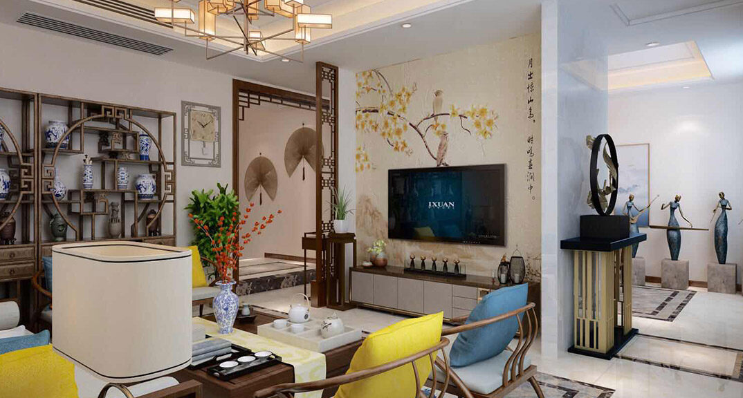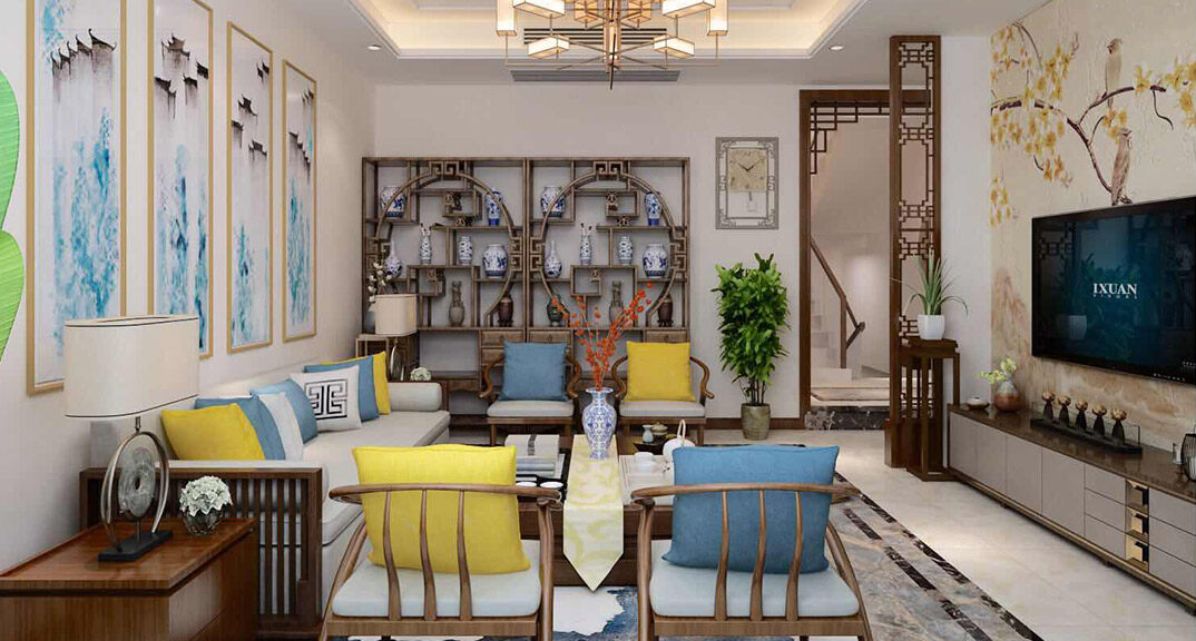 中國(guó)傳統(tǒng)的室內(nèi)設(shè)計(jì)融合了莊重與優(yōu)雅雙重氣質(zhì)?,F(xiàn)代的中式風(fēng)格更多的利用了后現(xiàn)代手法,把傳統(tǒng)的結(jié)構(gòu)形式通過(guò)重新設(shè)計(jì)組合以另一種民族特色的標(biāo)志符號(hào)出現(xiàn)。例如,廳里擺一套明清式的紅木家具,墻上掛一幅中國(guó)山水畫(huà)等,傳統(tǒng)的書(shū)房自然燒不來(lái)書(shū)柜、書(shū)案以及文房四寶。中式風(fēng)格的客廳具有內(nèi)蘊(yùn)的風(fēng)格,為了舒服,中式的環(huán)境中也常常用到沙發(fā),但顏色仍然體現(xiàn)著中式的古樸,中式這樣表現(xiàn)使整體空間,傳統(tǒng)中透著現(xiàn)代,現(xiàn)代中揉著古典。這樣就以一種東方人的‘留白’美學(xué)觀念控制的節(jié)奏,顯出大家風(fēng)范,其墻壁上的字畫(huà)無(wú)論數(shù)量還是內(nèi)容都不在多,而在于它所營(yíng)造的意境??梢哉f(shuō)無(wú)論現(xiàn)在的西風(fēng)如何勁吹,舒緩的意境始終是東方人特有的情懷,因此書(shū)法常常成就這種詩(shī)意的最好手段。這樣躺在舒服的沙發(fā)上,任千年的故事順指間流淌。