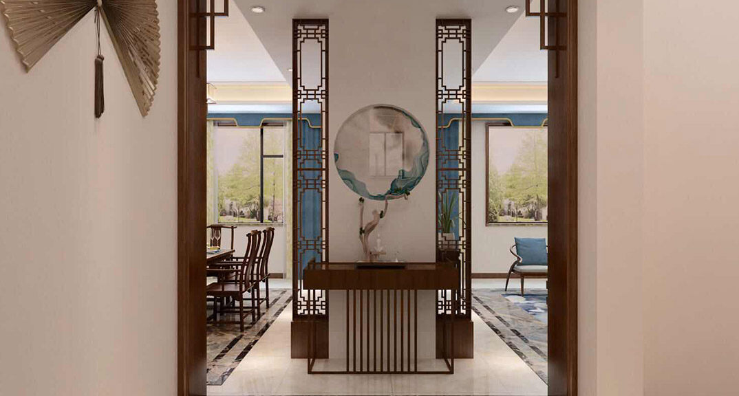 自建別墅360㎡別墅入戶玄關(guān)中式風(fēng)格裝修案例效果圖