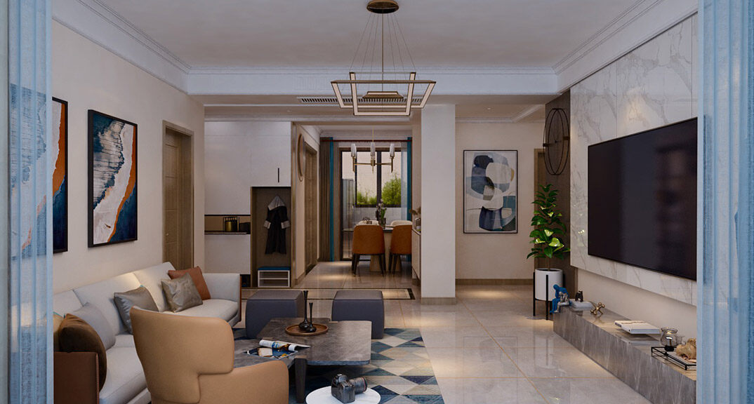 鑫江合院270㎡別墅客廳現(xiàn)代風格裝修案例效果圖