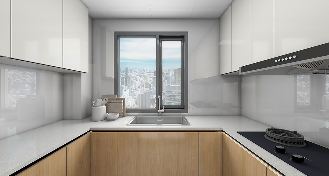 中歐國際城115㎡三室兩廳廚房原木極簡風(fēng)格裝修案例效果圖