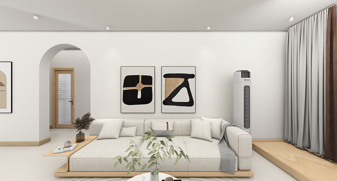 中歐國際城115㎡三室兩廳客廳沙發(fā)原木極簡風(fēng)格裝修案例效果圖
