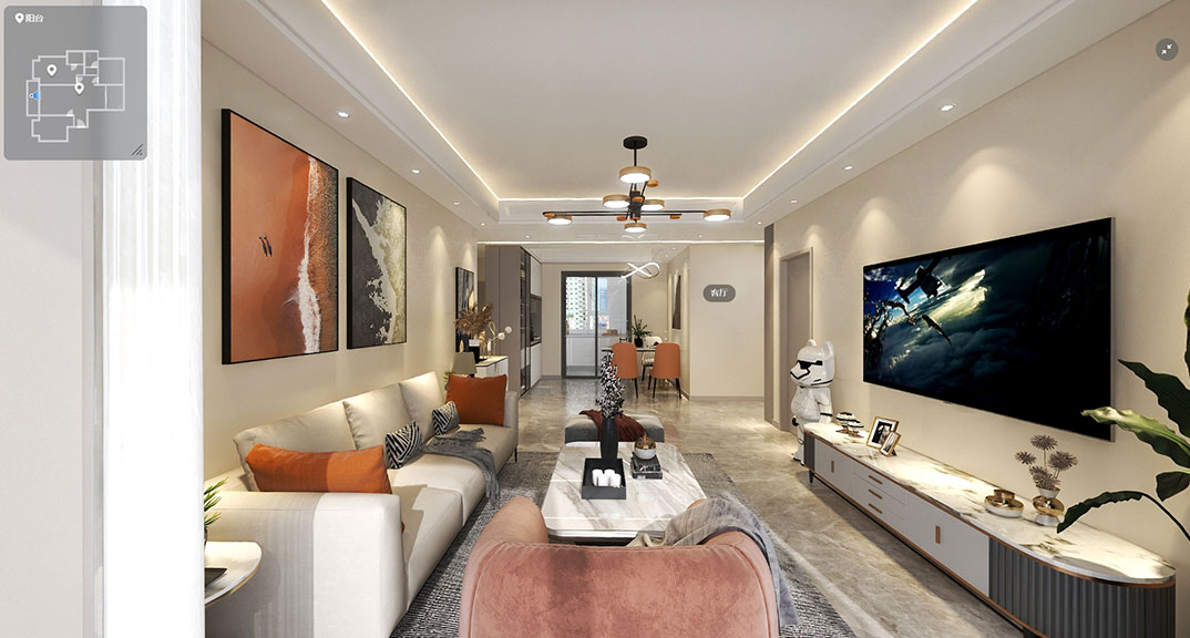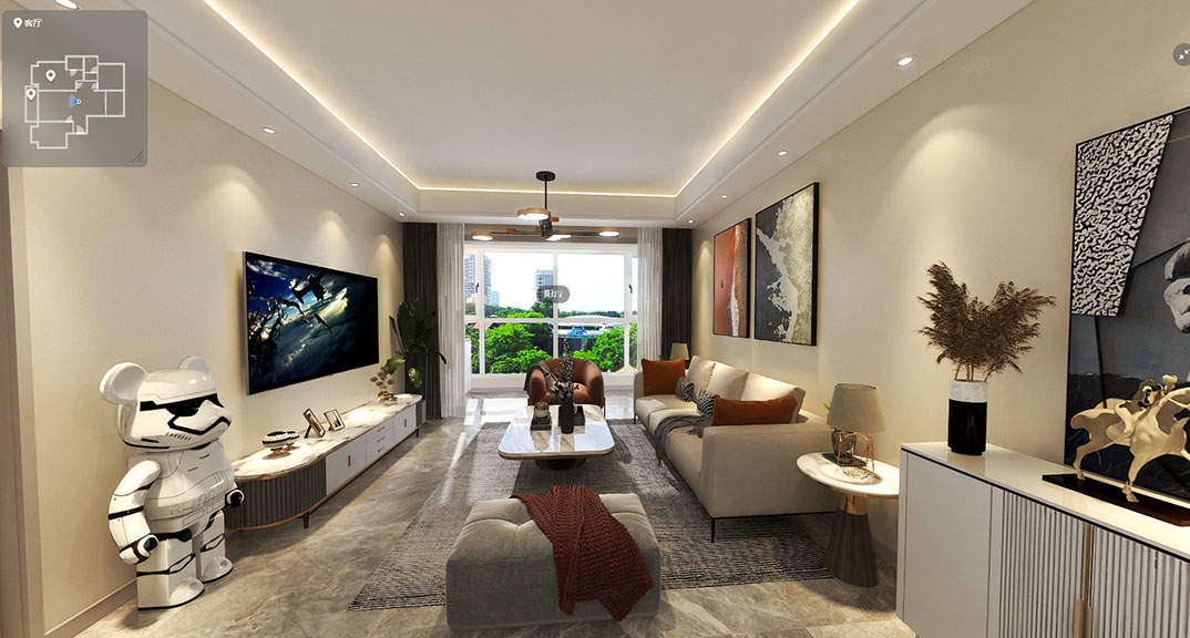 青鐵海御府143㎡三室兩廳客廳現(xiàn)代簡約風(fēng)格裝修案例效果圖