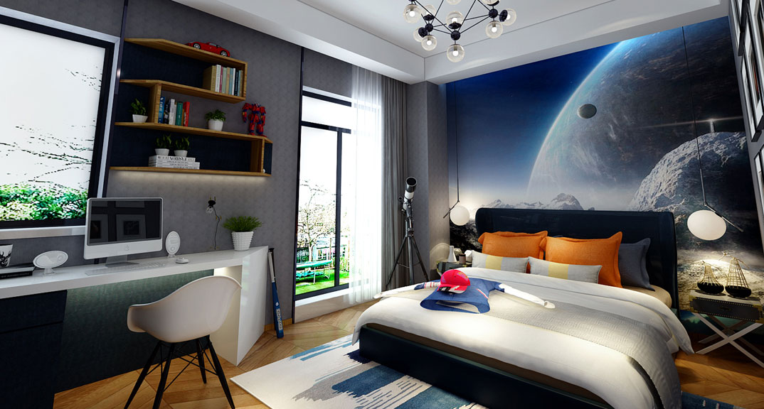 名悅山莊700㎡獨(dú)棟別墅二層兒童房港式風(fēng)格裝修案例效果圖