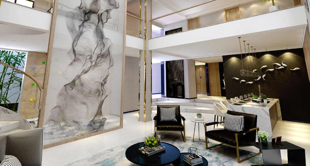 名悅山莊700㎡獨(dú)棟別墅港式風(fēng)格裝修案例效果圖