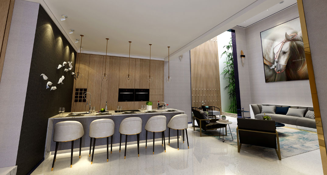 名悅山莊700㎡獨(dú)棟別墅負(fù)一層西廚港式風(fēng)格裝修案例效果圖