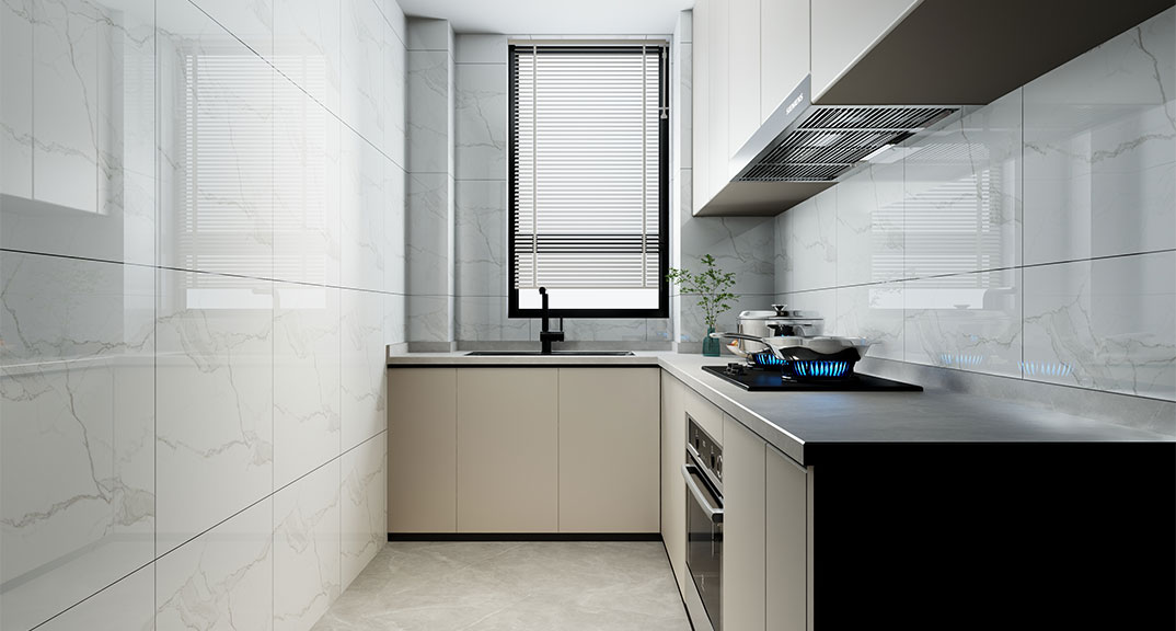 悅動灣109㎡三室兩廳廚房現(xiàn)代簡約風格裝修案例效果圖